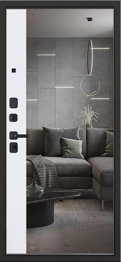 Надежная входная Дверь Scandi с зеркалом премиум класса по цене 44 987 руб. Большая толщина стали защитит от проникновения в ваш дом, квартиру или коттедж. Используется очень качественная фурнитура: замки, цилиндры, ручки, защелки. Покрытие и отделка двери изготовлено под внимательным контролем производителя. Дверь имеет долгий срок службы и гарантию.